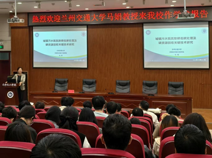 9月27日,兰州交通大学马娟教授应邀在我院112报告厅为我院师生作题为《城镇污水脱氮除磷低碳处理及磷资源回收关键技术研究》的学术报告。